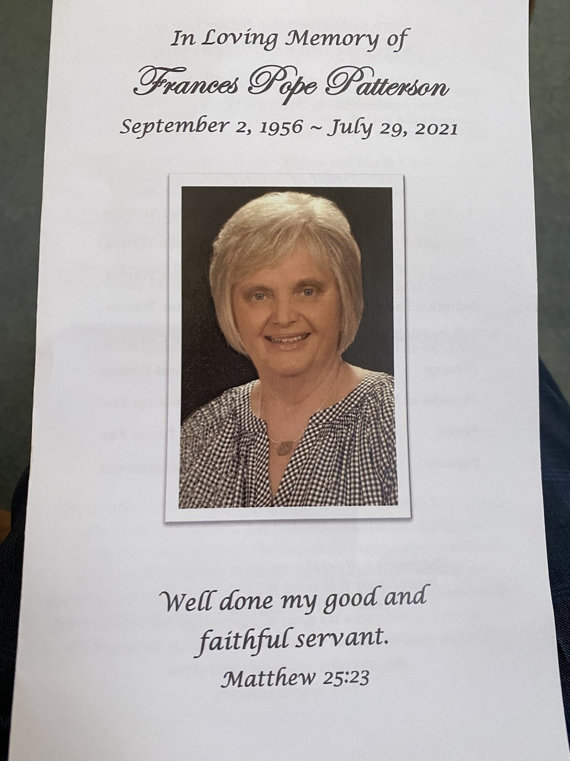 Above: Senator deViere attended the funeral of Senate Sergeant at Arms Frances Pope Patterson who passed away recently. She was a kind soul who touched countless lives and will by missed by many.