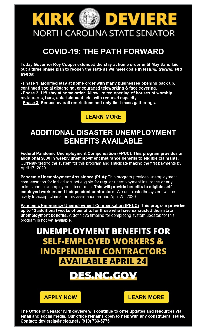 COVID-19 Update: Stay at Home Order Extended; Additional Unemployment Benefits Available April 23, 2020