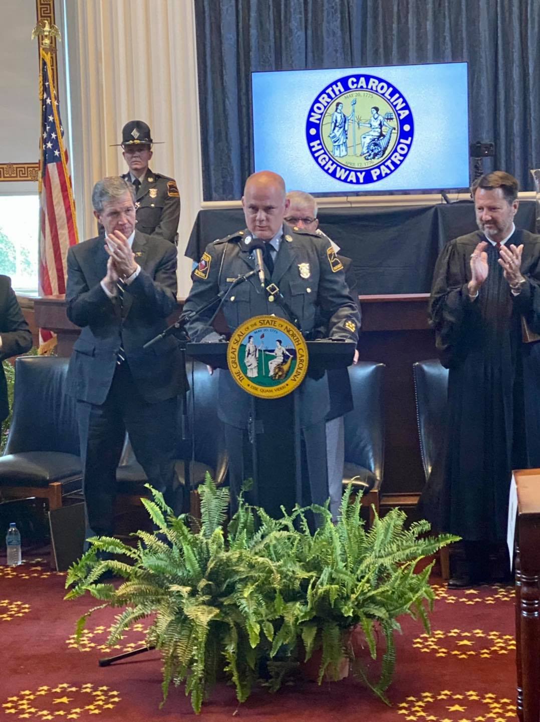 Above: Senator deViere attends the swearing in of NC Highway Patrol Commander Col. Freddy Johnson, Jr.
