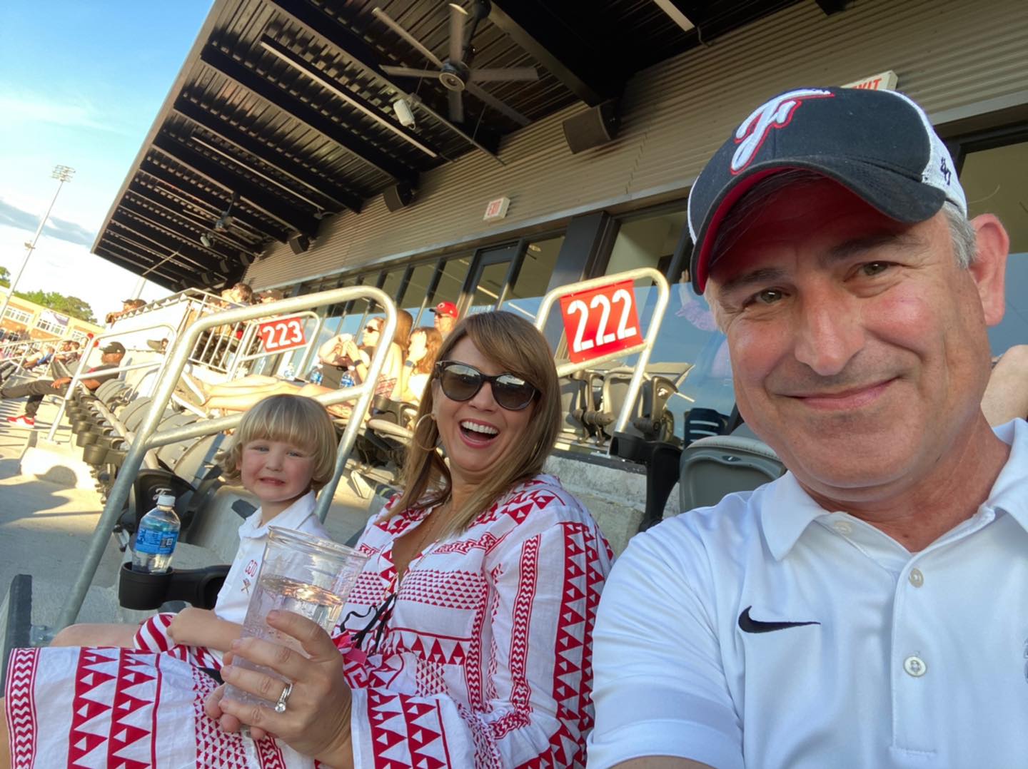 Above: Senator deViere, wife Jenny and son Greyson attend a Fayetteville Woodpeckers game.