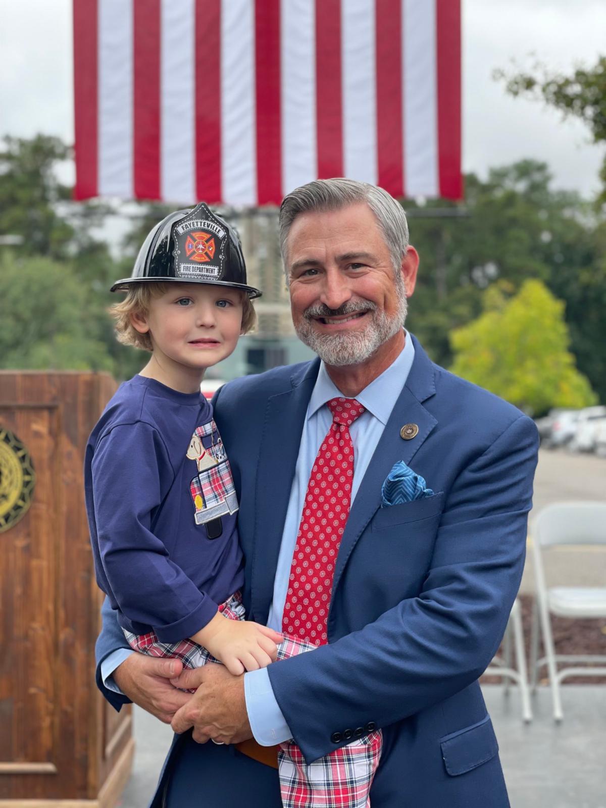 Above: Senator deViere had the honor to speak at the Fire Fighter Emergency Worker Memorial. His son Greyson also joined him.