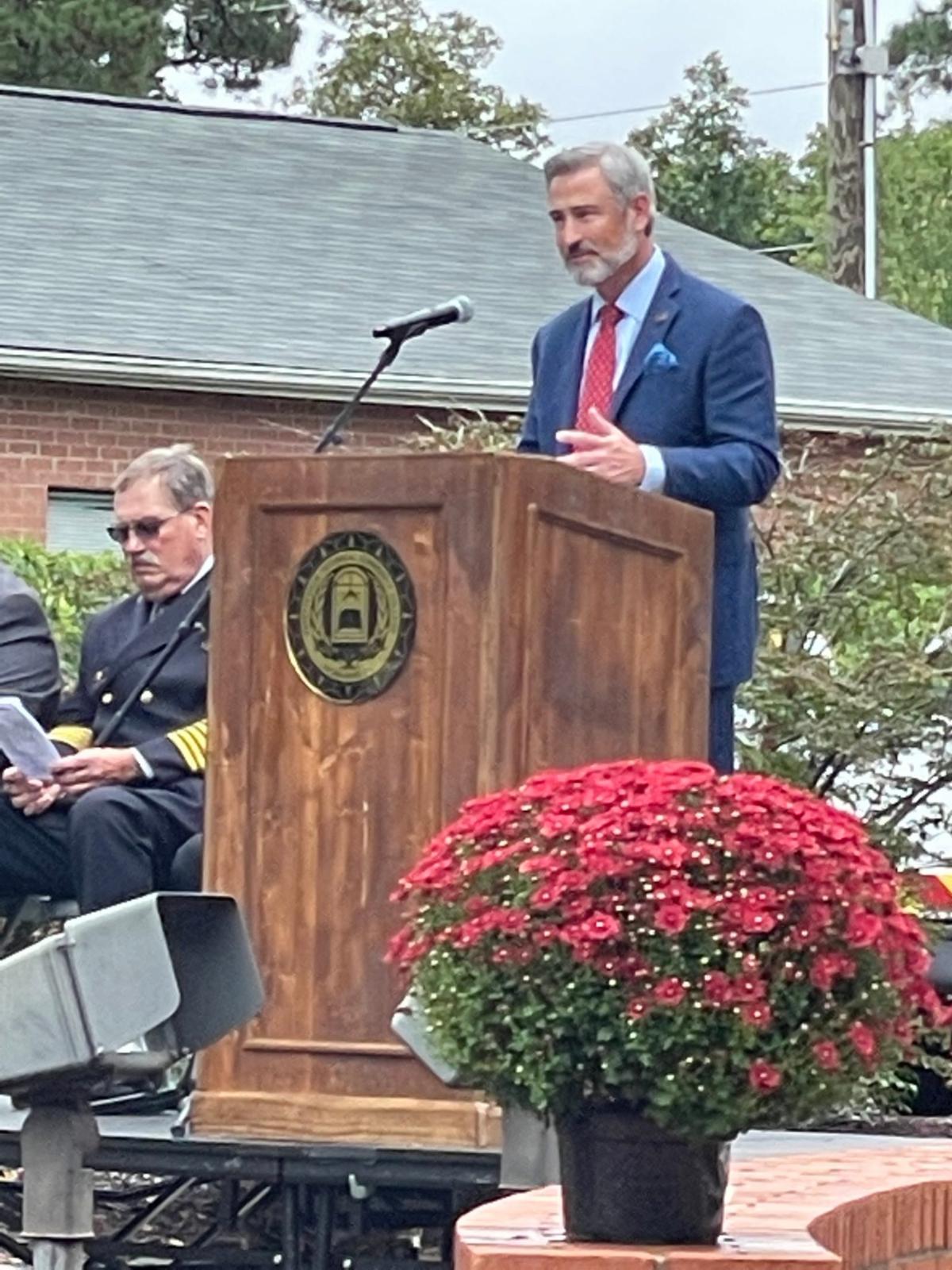 Above: Senator deViere had the honor to speak at the Fire Fighter Emergency Worker Memorial. His son Greyson also joined him.