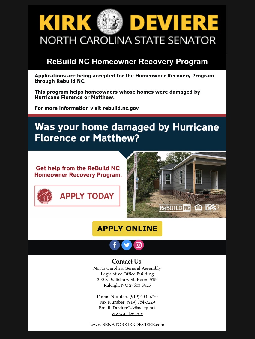 ReBuild NC Homeowner Recovery Program Now Available for Hurricane Recovery