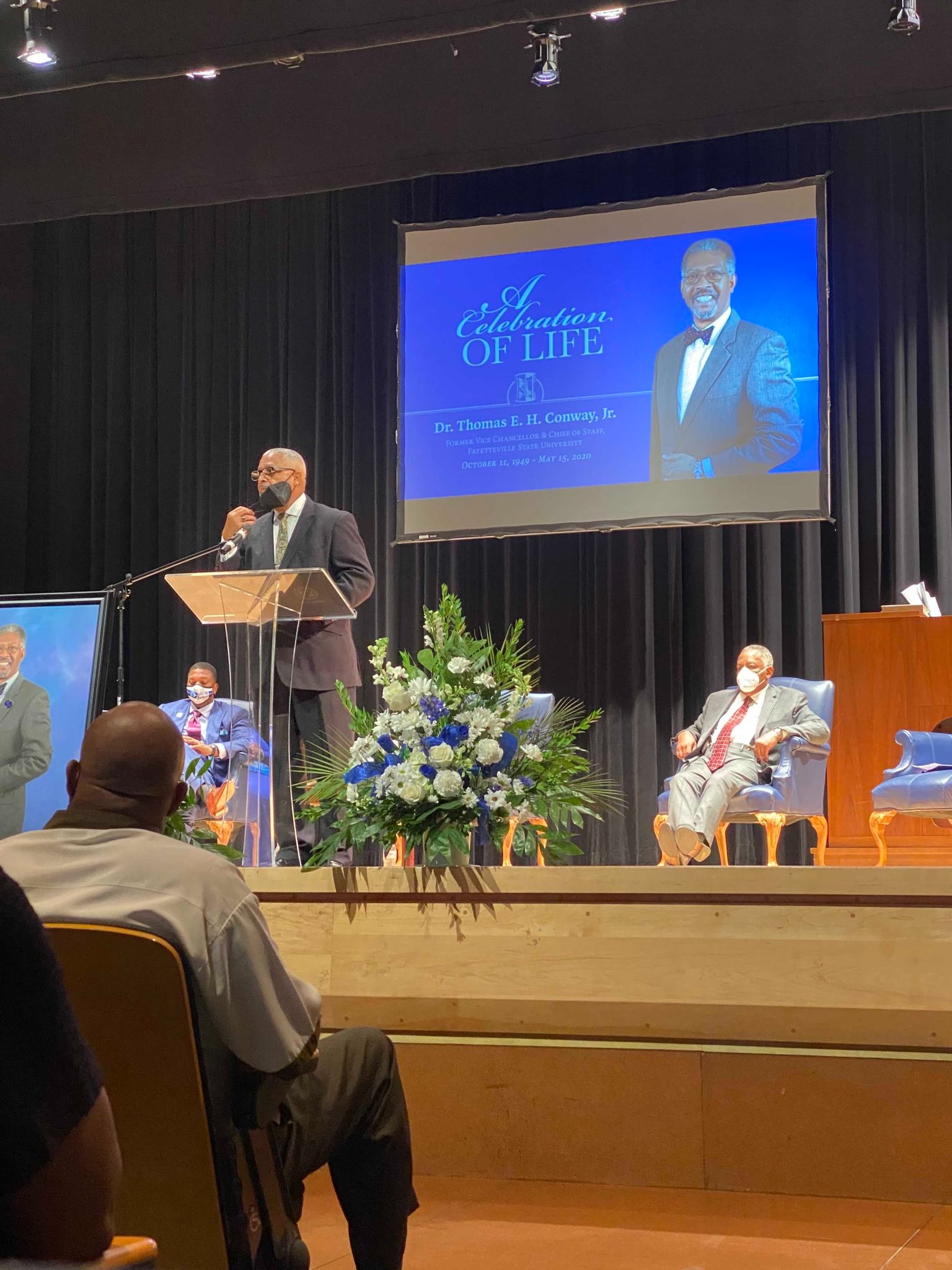 Above: Senator deViere attends a Celebration of Life Dr. Thomas Conway, Jr. at Fayetteville State University.