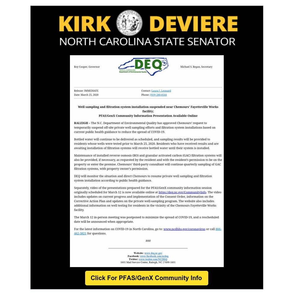 UPDATE: DEQ RELEASE ON WELL SAMPLING & FILTRATION SYSTEM INSTALLATION